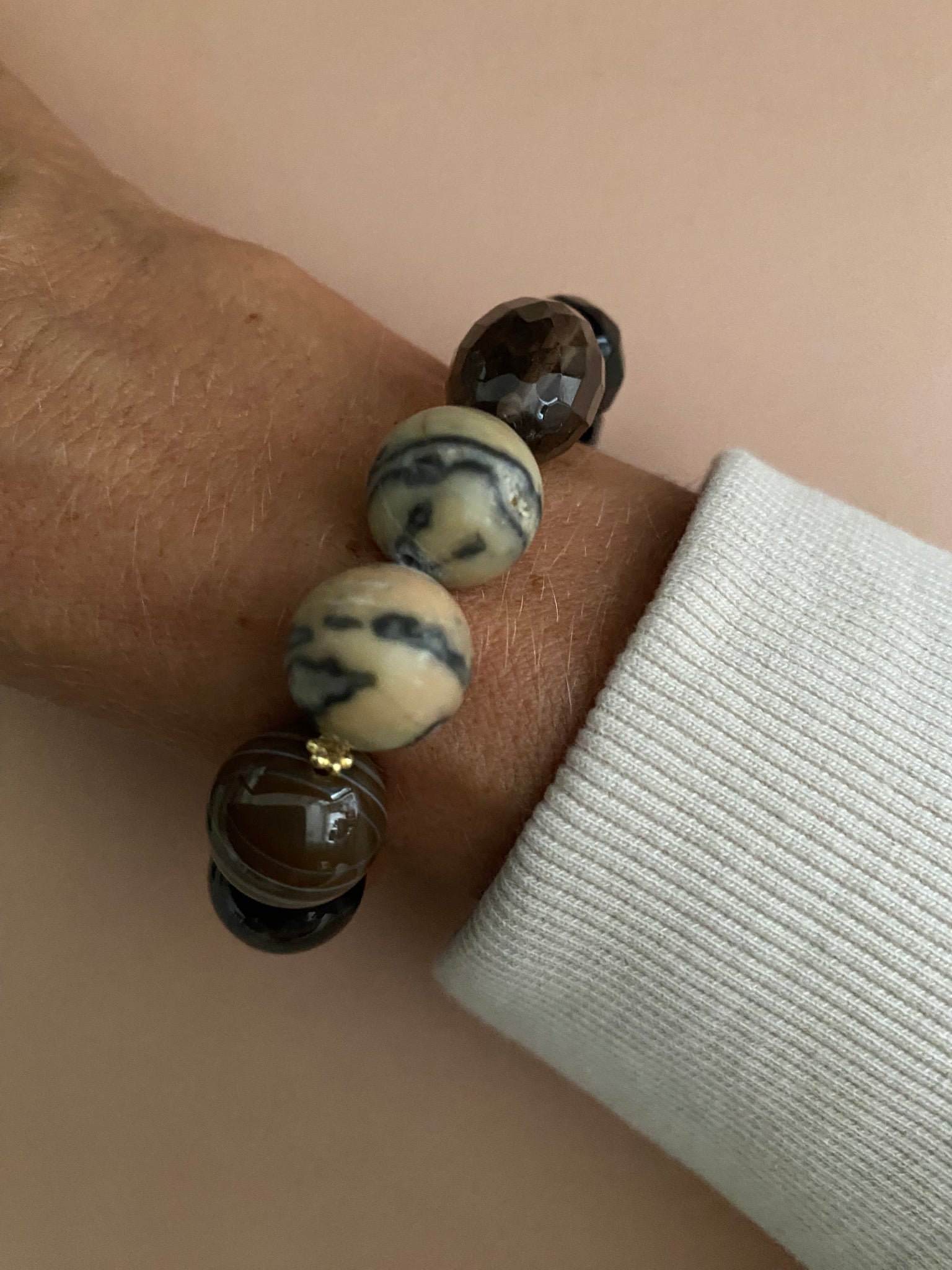 Mit einer Länge von 18 cm und auf elastisches Band gearbeitet, sind die Goya Armbänder super als Statement Armband zu tragen oder zu kombinieren.