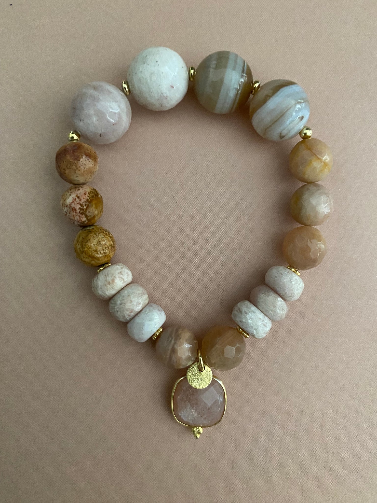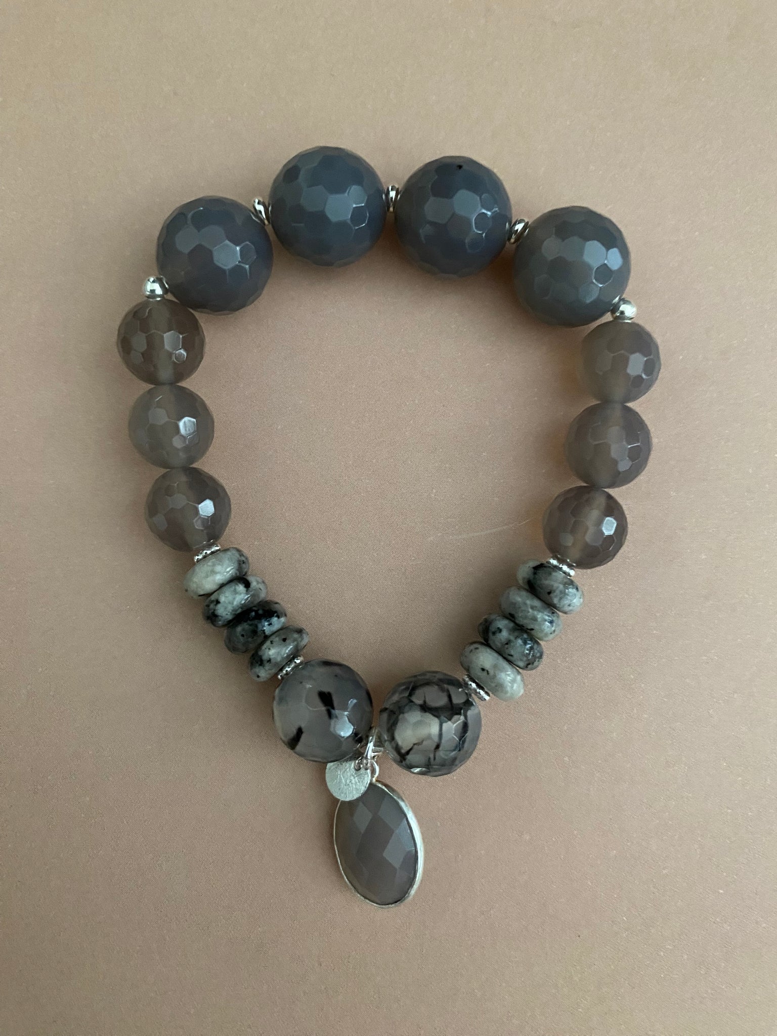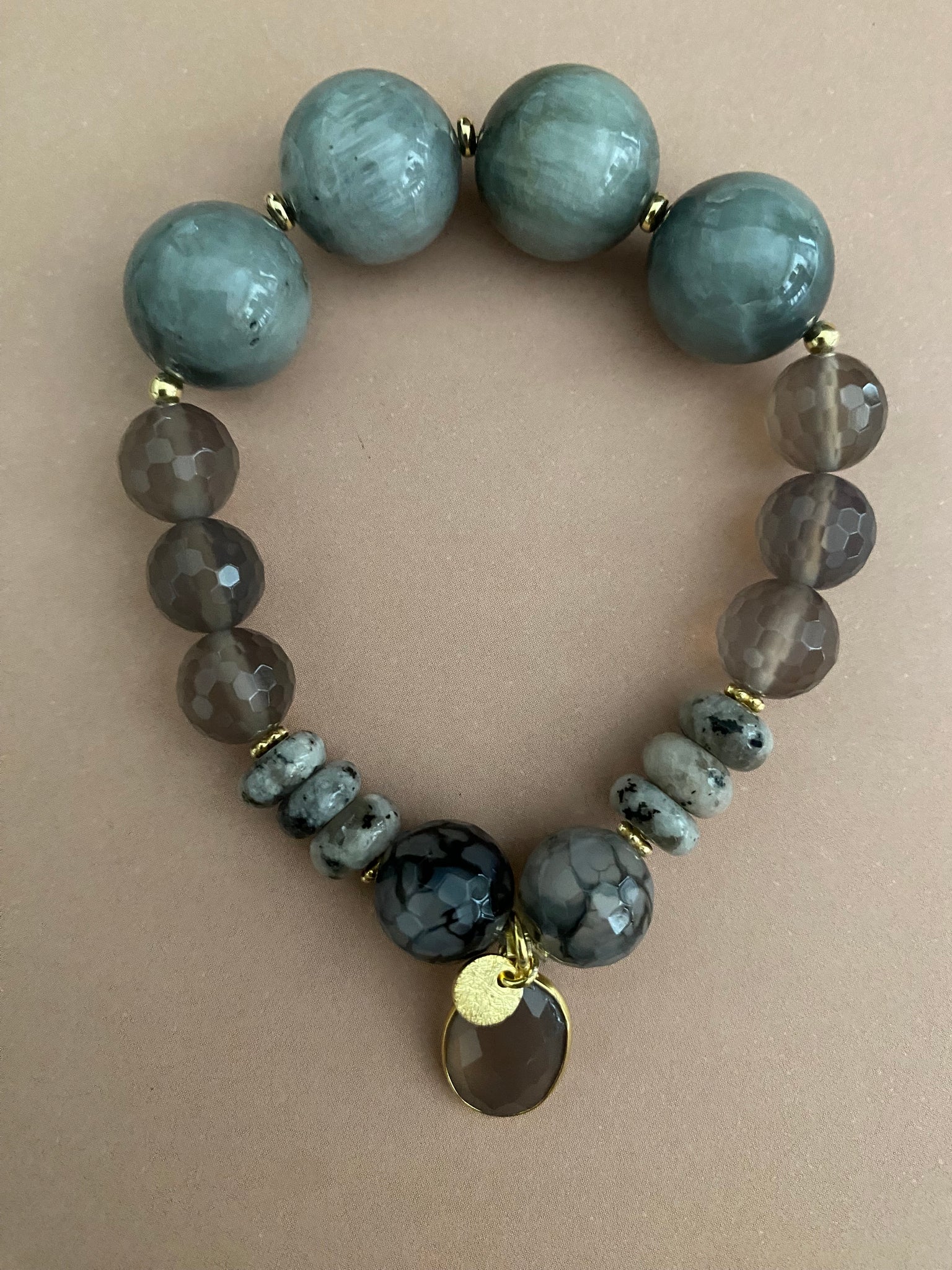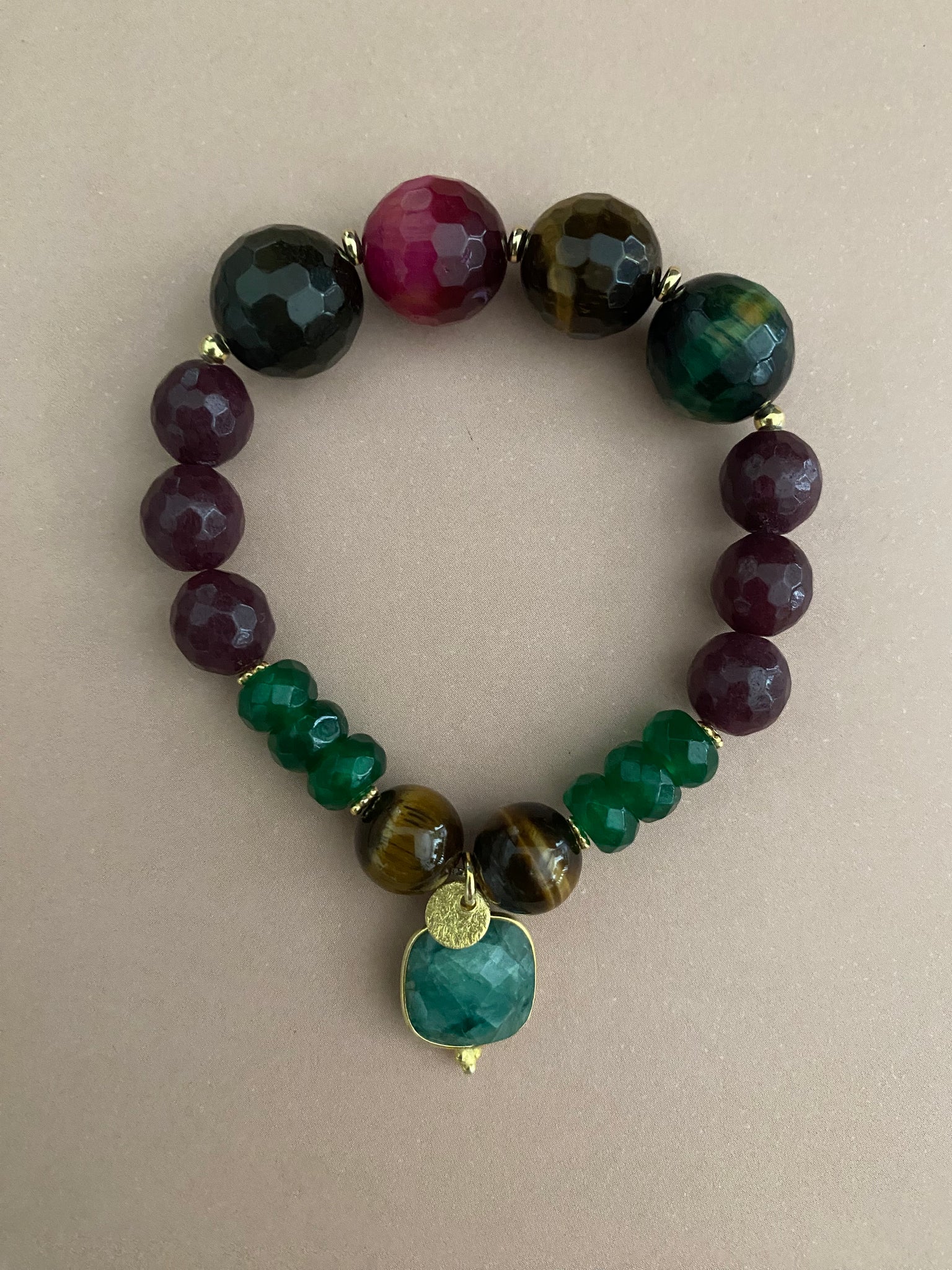 Gefasste und facettierte Edelsteine zieren eine Seite der Armbänder. Sie lassen sich super kombinieren und sind ein edler Hingucker.